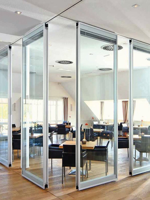 Стекло фиксировано в трансформирующихся стеклопакетах на алюминиевом профиле.