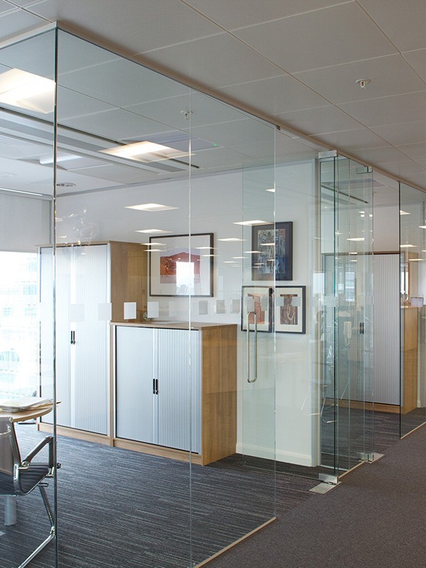 Стеклянные прозрачные перегородки в офис премиум